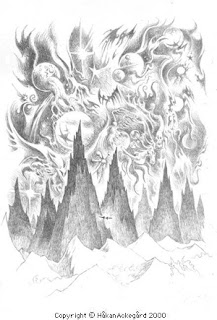 Davanti a loro c’era Starkweather o meglio la sua testa, inserita in una orribile composizione che sembrava la macabra opera d’arte di quelle creature antiche: un enorme manufatto costruito con decine di teste recise ancora vive formava una muraglia vivente. Alcune erano pinguini albini, altre erano “teste” decomposte ma una testa, quella del capo esplorazione, pareva osservarli e non vederli nel mezzo di quel sovrapporsi di follia inimmaginabile.